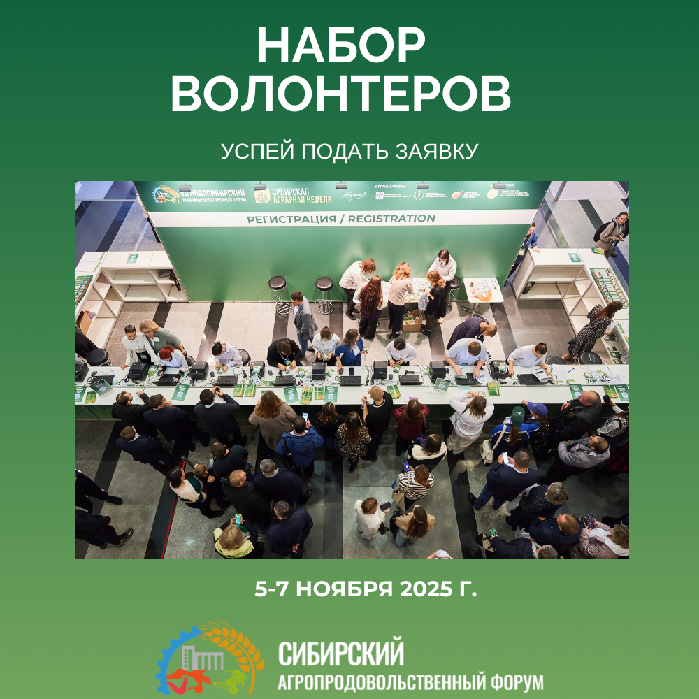 Приглашаем активных и неравнодушных ребят стать волонтёрами на крупном событии – Сибирском агропродовольственном форуме, который пройдёт в Новосибирске с 5 по 7 ноября 2025 года на площадке МВК «Новосибирск Экспоцентр».